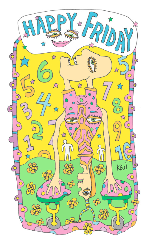 Artists: Kate Eggleston-Wirtz Project: Happy Friday – New illustrations every Friday. Website: www.eggwirtz.com Do a handstand, do a jig. Wiggle, wiggle – wear a wig. Happy Friday, count to ten… Shout it…