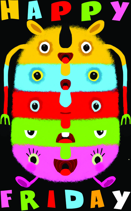 Artist: Adam Pryce Title: Happy Friday The Totem Creature Website: adampryce.com The Totem Creature is actually five creatures stacked up on top of each other. They are usually found deep in the Amazon rain forest and…